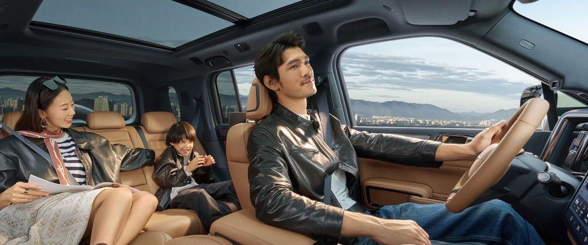 内饰部分,豹5以三屏互联(15.6英寸中控+双12.3英寸屏)和DiLink系统打造科技座舱,支持四音区语音识别、HUAWEI HiCar和DeepSeek接入,科技感十足。Nappa真皮座椅具备通风、加热、按摩功能旗开网,前排可放平形成床榻。天神之眼智驾系统实现高速领航辅助和记忆泊车,带来不错的安全性和便捷性。