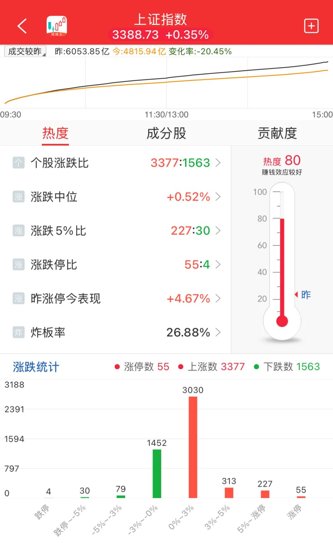 评:中国股民是好客的,上周五随了份子钱。但中国股民也不傻,中东战争关我们鸟用!所以,今天A股又开始走慢牛了,指数全线上涨,个股3500家红盘,中位数+0.52%,你们都回血了吧。