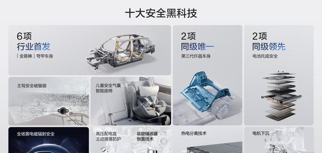 比如“金箍棒”穹甲车身、主驾安全破窗器、高压配电盒主动滑落防护等创新设计,结合一体式压铸后端铝车身,构建了720°全方位安全防护。就连车窗玻璃都特别用心,采用特殊结构,既安全又能在紧急情况下轻松破窗。